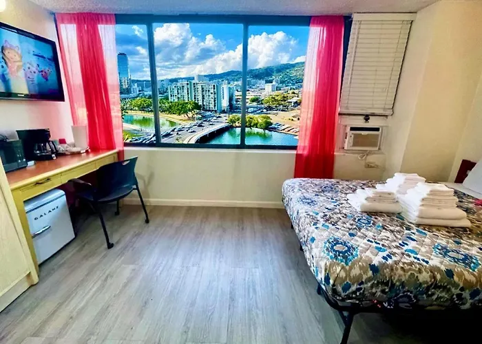 The accommodation lies in the Waikiki district, a 25-minute walk from Honolulu Zoo.